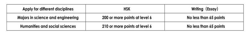●Applicants for disciplines taught in Chinese should submit transcripts or other relevant documents proving their Chinese language proficiency in accordance with the following standards.