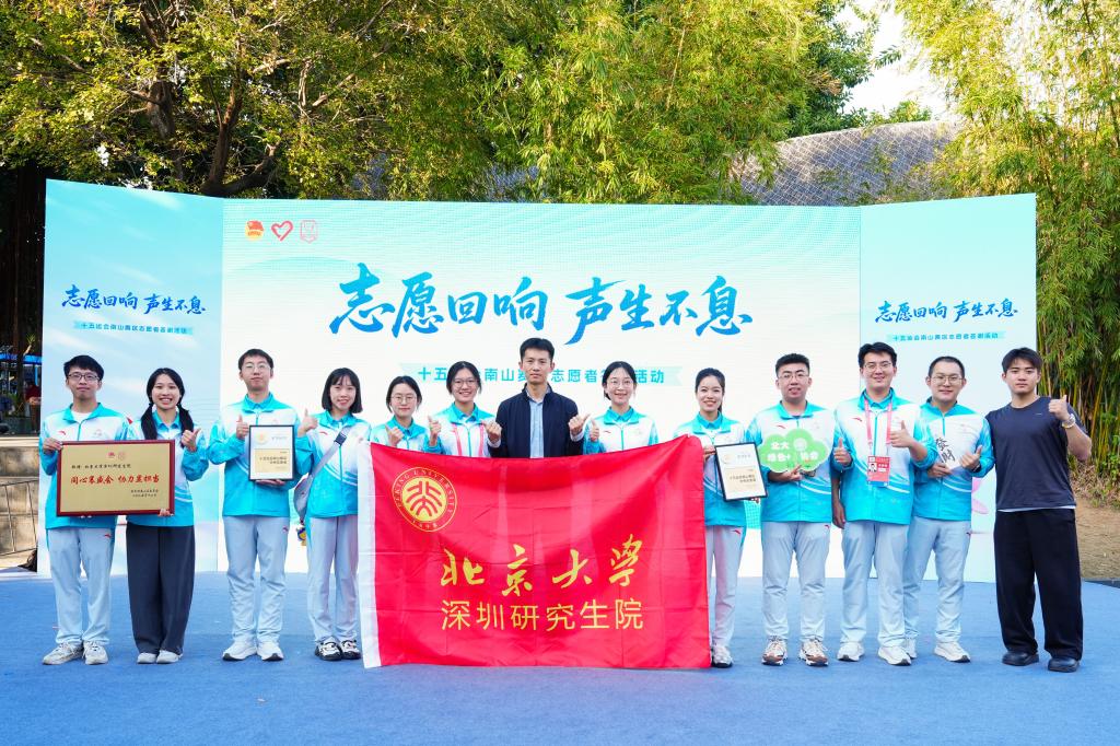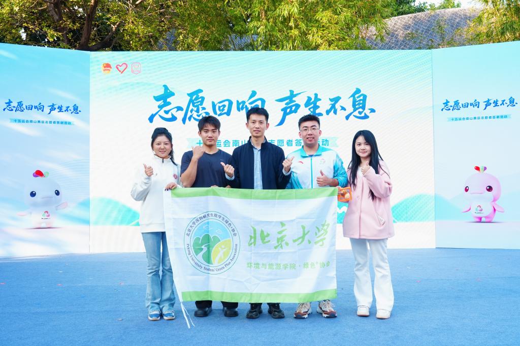 在共青团北京大学深圳研究生院委员会和北京大学深圳研究生院环境与能源学院的指导下,学生绿色+协会以“志愿回响,绿动未来”为主题,打造了集环保科普、互动体验和感谢回馈于一体的北大深研院特色展位,成为在场十五运志愿者和市民们广泛参与的爆款活动。