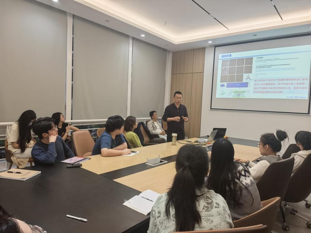讲座中,方临川教授系统梳理了当前环境微塑料研究的关键科学问题与发展动态,重点阐述了微塑料在环境中的迁移转化、生态毒理效应及污染控制技术等方面的前沿进展。他结合团队近年来的研究成果,通过丰富的数据和案例,深入剖析了微塑料与污染物复合作用机制、生物累积效应及其对生态系统和人体健康的潜在影响,并对未来该领域的研究方向和技术挑战进行了展望。在交流环节,与会师生围绕微塑料监测方法、风险评估及治理策略等问题踊跃提问,方临川教授逐一进行了详细解答,现场互动热烈。