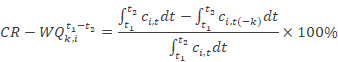 为了量化输入负荷对水质的贡献,本研究提出了负荷对水质的贡献率(CR-WQ),即去除污染负荷k后,位置i从t1到t2的浓度c改善率被认为是负荷k对水质的贡献率,即: