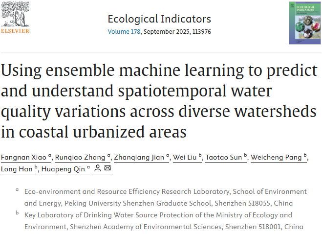 1. 利用集成机器学习来预测和理解沿海城市化地区不同流域的时空水质变化Using ensemble machine learning to predict and understand spatiotemporal water quality variations across diverse watersheds in coastal urbanized areas