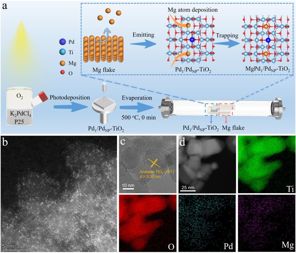图1:Mg/Pd1/PdNP-TiO2催化剂的结构表征