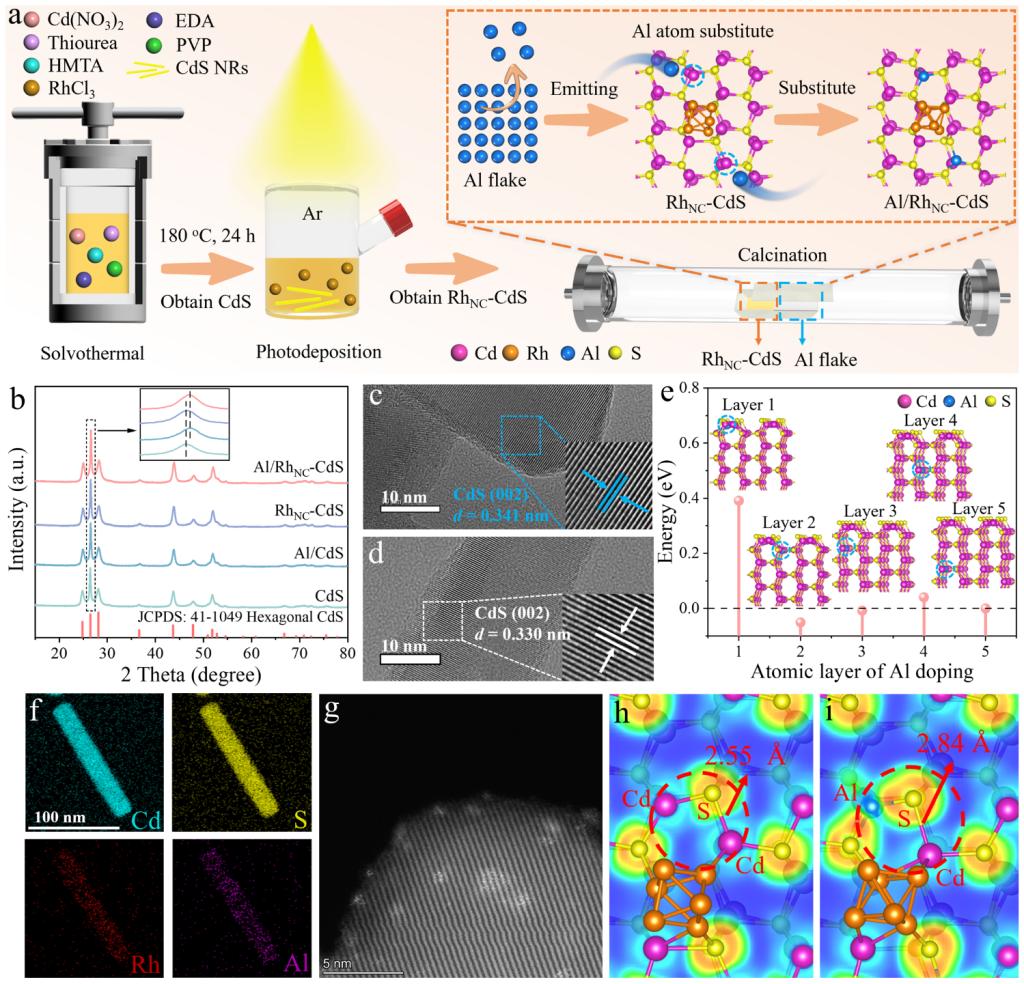图1:Al/RhNC-CdS催化剂的结构与双应变表征